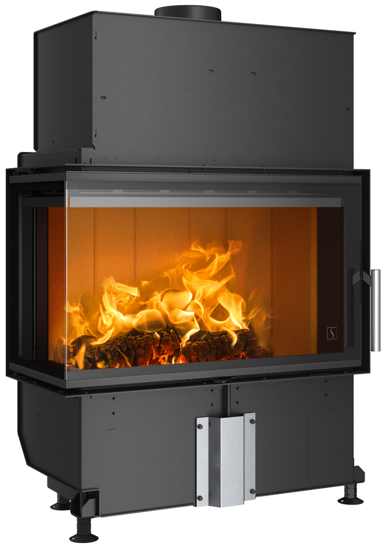 Scan 5107 to wkład kominkowy o dyskretnym, ale wyrazistym designie, który pozwala cieszyć się widokiem płomieni przez dwustronne drzwiczki szklane, dając wrażenie siedzenia przy otwartym kominku. Dopływ powietrza reguluje się łatwo za pomocą jednej dźwigni, a elegancki uchwyt i czarna ramka wokół szyby dopełniają całości. Wybierz model z drzwiczkami otwieranymi na prawo lub na lewo, który można zainstalować na środku pomieszczenia lub idealnie w rogu. Możesz również zamontować dodatkowe kamienie akumulujące ciepło w obu wkładach. Są one ukryte w górnej komorze i zapewniają dodatkowe ciepło do 12 godzin po dołożeniu ostatniego kawałka drewna.